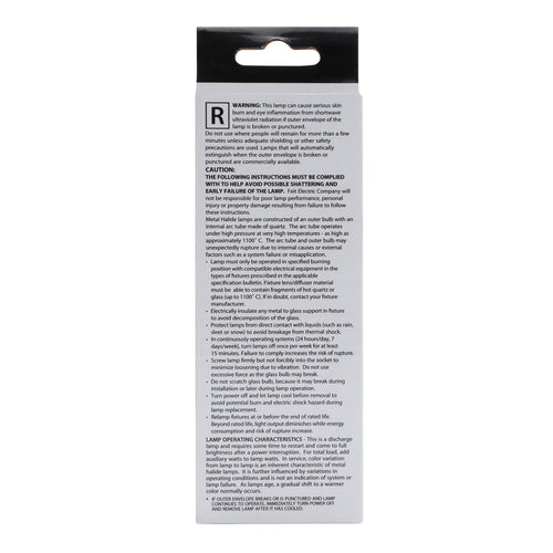 - Long-lasting metal halide has an average life of 10,000 hours/9.1 years (based on 3 hrs. daily use)