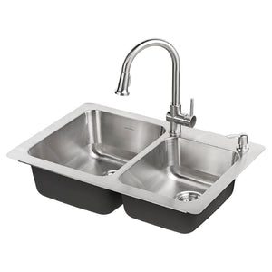 American Standard Montvale® 33 x 22-Inch Stainless Steel Double-Bowl Kitchen Sink Kit