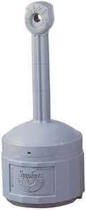 Waste container for cigarettes. Made of polyethylene with a gray finish. Covered opening keeps rain out and discourages trash from being dropped in. Molded-in graphics identify opening for cigarette butt disposal. Extinguishing snuff spot. Cease-Fire design limits the flow of oxygen to safely and quickly extinguish cigarettes. Large 16 qt. galvanized steel pail removes for cleaning. Molded-in tie-down notches on both sides provide security from theft or severe weather. Size 16-1/2"D x 38-1/2"H.