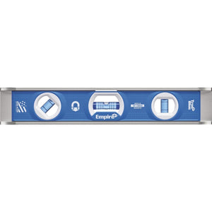 True Blue vials are accurate to within .0005 In. (inch) per inch in all working positions. Heavy-duty extruded aluminum frame with top read window. Three e-Band vials highlight the meniscus of the bubble to provide a clear reading at plumb and 45 Degrees, while the Dual-Pitch vial can read slope at 1/8 In. and 1/4 In. increments in either direction. Three powerful rare earth magnets for 15 Lb. (pound) of holding power. Features straight edge groove and wall grippers to allow users to extend the length of the level with any straight edge.