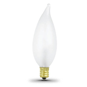 Add a decorative touch to your home or business with the Feit Electric frost 25-watt decorative flame tip candelabra light bulbs (2-Pack). These bulbs feature a flame shape making them ideal for sconces, chandeliers, and fixtures where the bulb is visible.