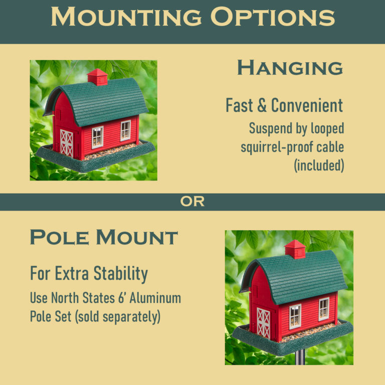- Can be used as a hanging feeder or pole mounted