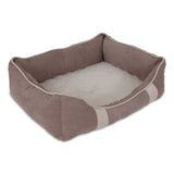 Now older, arthritic pets can have support and luxury at an affordable price! The Aspen Pet® Foam & Fiber Lounger is perfect for pets that need extra support with the gentle touch of cozy plush fabric. The super-soft plush sleep surface has a base made with orthopedic foam for superior comfort and support, while the raised sidewalls crafted from a microsuede fabric are filled with high-loft, recycled polyester fiber fill. The bed features a contrasting suede accent patch on the front and contrasting piping on the top to give this bed a classic look. Ships in 4 assorted colors Black, Taupe, Espresso, and Rosewood. Measures 22" x 18" x 6.5".