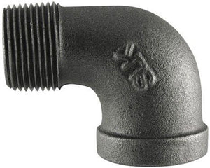 Malleable 90° street elbow. Size 3”. Black.
