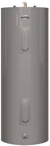 Tall Essential Electric Water Heater. Isolated tank design reduces conductive heat loss. EverKleen self cleaning device fights harmful sediment build-up with a high- velocity spiraling water stream – helps operating efficiency by saving energy, money and improving tank life. 4500 Watt resistored copper elements to prolong anode rod and tank life. Premium grade anode rod provides long-lasting tank protection. Electric junction box located above heating elements for easy installation. Over-temperature protector cuts off power in excess temperature situations. Automatic thermostat keeps water at desired temperature. 6 year. Size 50 gallon. Tank height 58-5/8”. Tank diameter 20-3/8”.